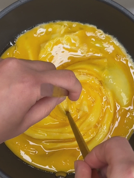 달걀 알끈을 제거하지 않으면 뭉침현상이 강해서예쁜 회오리 모양이 나오질 않아요!
